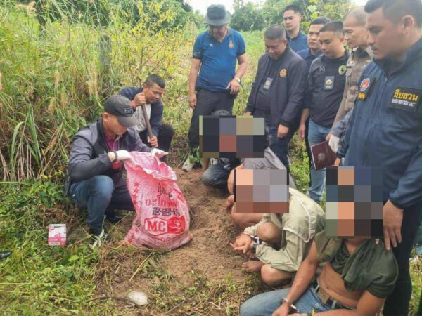 ทราบภายหลังว่า เป็นบ้านเช่าไว้พักอาศัยของ นาย อ้น ศิลาลาด ที่เป็นหัวเรือใหญ่ในการจำหน่ายยาบ้า แถบอีสานล่าง ซึ่งตอนนี้อยู่ระหว่างการหลบหนีไปอยู่ประเทศสาธารณรัฐประชาธิปไตยประชาชนลาว ซึ่งกำลังขอออกหมายจับ หลังสอบสวน ทั้ง 3 คนเสร็จ ไปขุดหลุมเพื่อค้นหายาบ้า ซึ่งก็พบว่าถูกบรรจุไว้ในกระสอบปุ๋ย หลังจากมัดซีลมัดไว้อย่างดี ตรวจสอบเบื้องต้น มีจำนวน 103,600 เม็ด