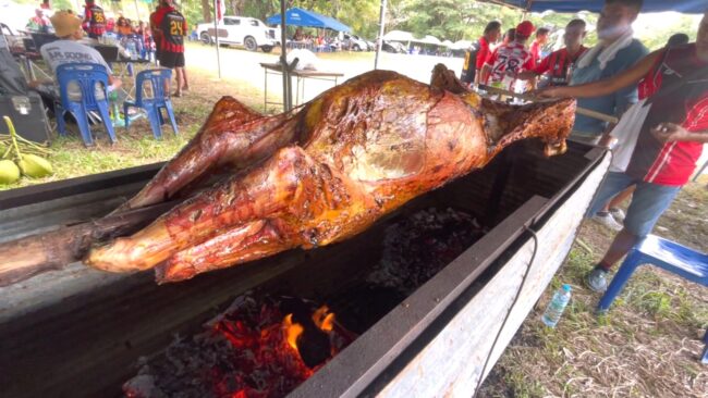 วันนี้ “เมธี เมืองแก้ว” ผู้สื่อข่าว จ.ตรัง จะพาไปพบ “คุณประโชติ ชุมอักษร” และผองเพื่อน ชาว ต.เขาวิเศษ อ.วังวิเศษ จ.ตรัง นามกลุ่ม “สิงห์ วัวหันเขาวิเศษ” ร่วมกันทำวัวย่าง “วัวหัน” เมนูขึ้นชื่อของชาวตำบลเขาวิเศษ นับเป็นเมนูเลื่องชื่อสุดฮิต ประจำถิ่นเขาวิเศษเลยก็ว่าได้ เพราะ เนื้อสัมผัสนุ่มอร่อย หอมกลิ่นเครื่องเทศ ซอสสูตรเด็ดรสชาติเผ็ดร้อนไม่เหมือนใคร
