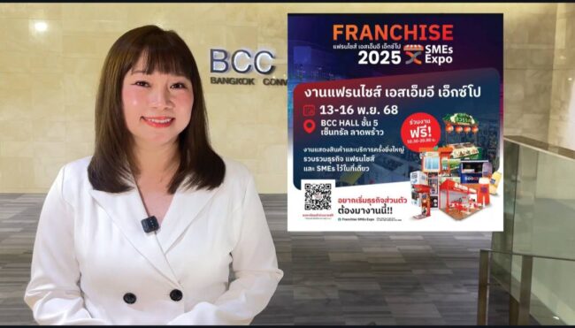 ปนัดดา แสงธรรมชัย CEO และกรรมการผู้จัดการ บริษัท สกุลวี กรุ๊ป จำกัด เชิญชวนผู้ที่อยากเริ่มต้นธุรกิจส่วนตัว เข้าร่วมงาน “แฟรนไชส์ เอสเอ็มอี เอ็กซ์โป 2025” (Franchise SMEs Expo 2025) มหกรรมธุรกิจแฟรนไชส์ครั้งใหญ่ส่งท้ายปี ระหว่างวันที่ 13–16 พฤศจิกายน 2568 ณ บีซีซี ฮอลล์ ชั้น 5 เซ็นทรัล ลาดพร้าว กรุงเทพฯ ตั้งแต่เวลา 10.30 – 20.00 น. เข้าชมงาน ฟรี!
