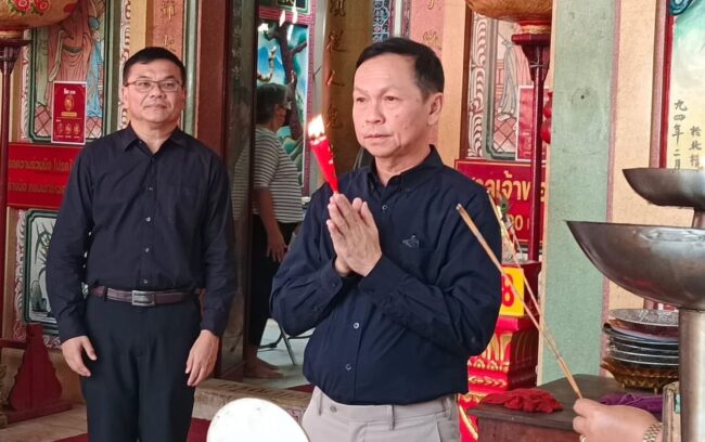 หลังเดินทางมาถึง นายศุภมิตร ชิณศรี ผู้ว่าราชการจังหวัดสมุทรปราการ และ นางอรวรรณ ชิณศรี นายกเหล่ากาชาดจังหวัดสมุทรปราการ ได้เดินทางเข้าสักการะศาลเจ้าพ่อหลักเมือง ที่ตลาดปากน้ำ ก่อนจะเดินทางเข้าสักการะพระพุทธชินราชมงคลปราการ ภายในวิหาร ใกล้ศาลากลางจังหวัด และเข้าสักการะพระราชาอนุสาวรีย์พระบาทสมเด็จ พระจุลจอมเกล้าเจ้าอยู่หัว รัชการที่ 5 บริเวณริมเขื่อนหน้าศาลากลางจังหวัด เพื่อความเป็นสิริมงคลก่อนเข้ารับตำแหน่งอย่างเป็นทางการ