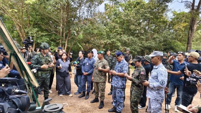 กองกำลังทหารที่12 นำคณะ AOT เข้าพื้นที่ชายแดน เขาพระวิหาร ที่ตรวจทุ่นระเบิด