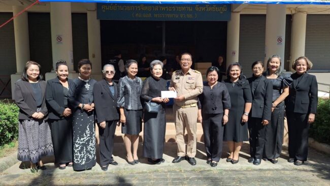 • นางศิริพร นาคนิยม นายกเหล่ากาชาดจังหวัดชัยภูมิ พร้อมด้วยสมาชิกเหล่ากาชาดฯ ที่ร่วมสนับสนุนกิจกรรมเพื่อสังคม