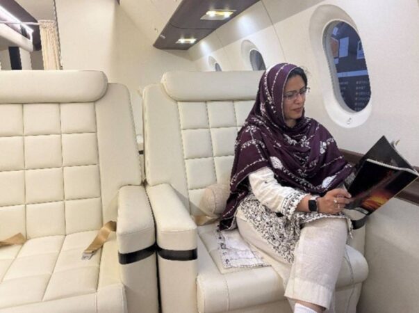 ผู้เชี่ยวชาญชาวปากีสถานจาก People’s Daily Online นั่งในห้องโดยสารชั้นเฟิร์สคลาสที่ฐานถ่ายทำภาพยนตร์และโทรทัศน์นานาชาติหลิงสุยไห่เฟิง มณฑลไห่หนาน ทางตอนใต้ของจีน (People’s Daily Online/มณฑา บันดาลศิริกุล)