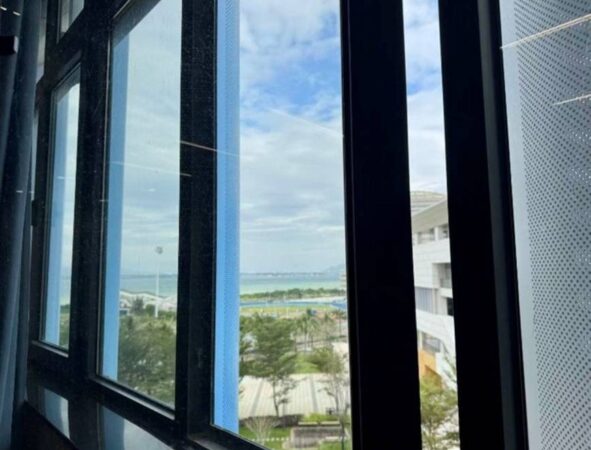วิวทะเลจากห้องเรียน ณ เขตนำร่องนวัตกรรมการศึกษาไห่หนานหลิงสุ่ยหลีอัน มณฑลไห่หนาน ทางตอนใต้ของจีน (People’s Daily Online/มณฑา บันดาลศิริกุล)