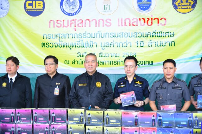 ทั้งนี้ จากการบูรณาการร่วมกันระหว่างกรมศุลกากรและหน่วยงานอื่น ๆ ที่เกี่ยวข้องทำให้สามารถป้องกันและปราบปรามสินค้าผิดกฎหมายได้อย่างมีประสิทธิภาพและสามารถปกป้องสังคมได้อย่างปลอดภัย สำหรับสถิติการจับกุมบุหรี่ไฟฟ้าและอุปกรณ์ในปีงบประมาณ 2569 (ตั้งแต่เดือน 1 ตุลาคม – 11 ธันวาคม 2568) ตรวจยึดได้ 123,870 ชิ้น/อัน/กล่อง/เซต มูลค่ารวมทั้งสิ้น 25,170,659 บาท