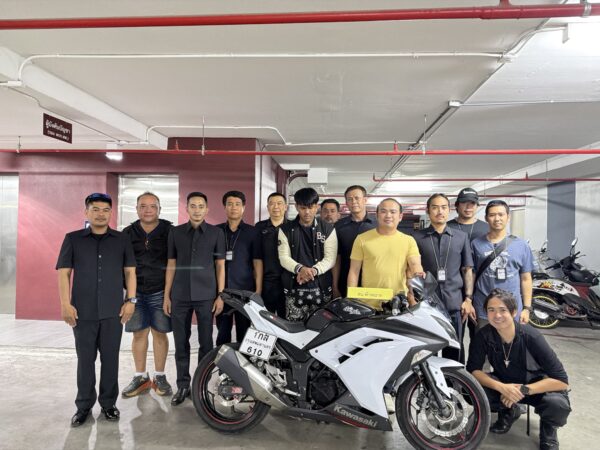 จากนั้นได้เดินเข้าไปบริเวณลานจอดรถ จัดรยานยนต์ แล้วเสียบกุญแจเปิดสตาร์ท รถจักรยานยนต์ ยี่ห้อ Kawasaki รุ่น Ninja 300 สีขาว ของผู้เสียหายออกมา แล้วขับไปจอดที่หน้าแฟลต 31 เขตดอนเมือง จากนั้นได้ถอดแผ่นป้ายทะเบียนออกไว้ที่หน้าห้องพักของตน เจ้าหน้าที่จึงได้นำตัวนายเกียรติภูมิ ไปตรวจยึดแผ่นป้ายทะเบียนรถผู้เสียหาย ก่อนนำตัวสอบสวนต่อที่ สน.หัวหมาก