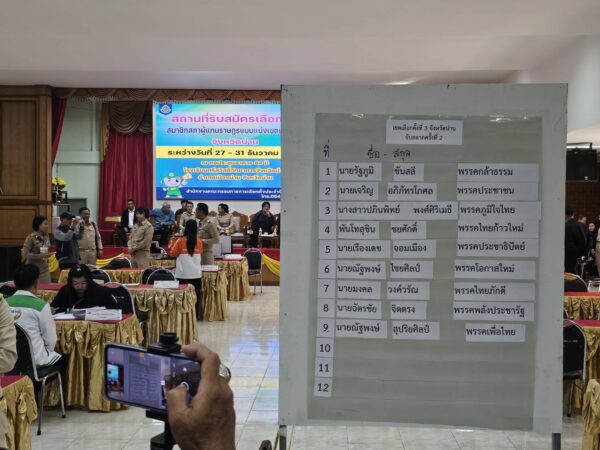 บรรยากาศรับสมัครเลือกตั้ง สส.แบบแบ่งเขตเลือกตั้ง จังหวัดน่านคึกคัก 11 พรรคการเมืองส่งผู้สมัครลงชิงชัย
