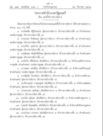 เมื่อวันที่ ๒๙ ธันวาคม ๒๕๖๘ ประกาศสำนักนายกรัฐมนตรี เรื่อง