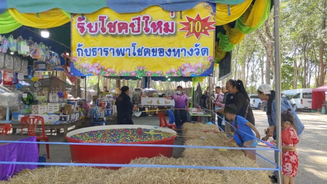 ส่วนสีสันที่ฮือฮาอยู่ที่กิจกรรมธาราพาโชคการกุศล ทางวัดจัดหนักรางวัลใหญ่ เป็นรางวัลพิเศษ “โลงศพ” ซึ่งไม่ใช่เป็นเรื่องที่น่ากลัว เพราะว่าเป็นปริศนาธรรม ในการเตือนสติให้ทุกคนได้ปล่อยวางเรื่องการเกิด แก่ เจ็บ ตาย เท่านั้น ส่วนใครที่ได้รางวัลพิเศษโลงศพ สามารถนำเอารางวัลโลงศพกลับบ้านก็ได้ แต่ถ้าไม่เอารางวัลโลงศพกลับบ้าน ก็สามารถบริจาคโลงศพให้กับทางวัดได้ เพื่อเป็นการทำบุญสะเดาะเคราะห์ต่อชะตา จะได้กุศลแรงและจะทำให้มีโชคลาภ นอกจากกิจกรรมธารพาโชค จะมีรางวัลพิเศษโลงศพแล้ว ทุกคนจะได้ลุ้นรับของรางวัลอีกมากมาย เช่น เครื่องใช้ไฟฟ้า พัดลม ตู้เย็น เครื่องซักผ้า ของใช้ต่างๆ อีกจำนวนมาก
