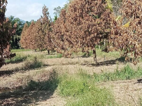 แหล่งข่าวจากบริษัทผู้ผลิตปุ๋ยและจำหน่ายสนิค้าพืชเกษตร เปิดเผยว่า จากสถานการณ์น้ำท่วมหนักระหว่างวันที่ 21 – 27 พฤศจิกายน 2568 ในพื้นที่ภาคใต้หลายจังหวัด ได้ส่งผลกระทบโดยเฉพาะสวนทุเรียนหนักมากทั้งที่เพิ่งปลูกและอายุระหว่าง 3-5 ปี และในส่วนที่ให้ผลผลิตแล้วบางกลุ่มผลร่วง และบางกลุ่มยืนต้นตาย