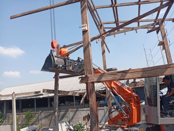 สำนักงานป้องกันและบรรเทาสาธารณภัย 13 ผนึกกำลัง ปภ.ศรีสะเกษและ ปภ. กันทรลักษ์ รื้อถอนบ้านเรือนราษฎรจากภัยสงครามเพื่อจัดสร้างใหม่
