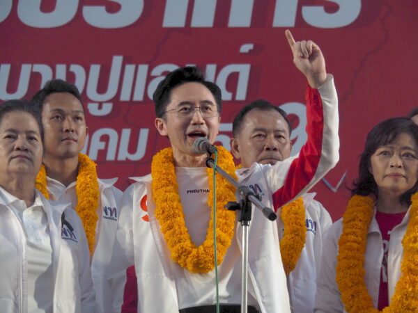 โดยมี นายพานทองแท้ ชินวัตร บุตรชายนายทักษิณ ชินวัตร อดีตนายกรัฐมนตรี นายจักรภพ เพ็ญแข ผู้สมัคร สส.แบบบัญชีรายชื่อ นายณัฐวุฒิ ใสยเกื้อ ผู้ช่วยหาเสียง พรรคเพื่อไทย ขึ้นเวทีปราศรัยในครั้งนี้ด้วย โดยมีผู้สมัคร สส. ทั้ง 8 เขต      ได้แก่ เขต 1 นายอัครวัฒน์ อัศวเหม เบอร์ 3 / เขต 2 ดร.ยงยุทธ สุวรรณบุตร เบอร์ 8 / เขต 3 นายภิญโญ กิจเลิศไพโรจน์ เบอร์ 3/ เขต 4 พ.ต.อ.กรวัฒน์ หันประดิษฐ์ เบอร์ 7/ เขต 5 นายปิยะพงษ์ เหมมะ เบอร์ 9/ เขต 6 นางนฤมล ธารดำรงค์ เบอร์ 8/ เขต 7 นายประชา ประสบดี เบอร์ 7/ เขต 8 นางสลิลทิพย์ สุขวัฒน์ เบอร์ 7 ขึ้นเวทีปราศรัยด้วยเช่นกัน