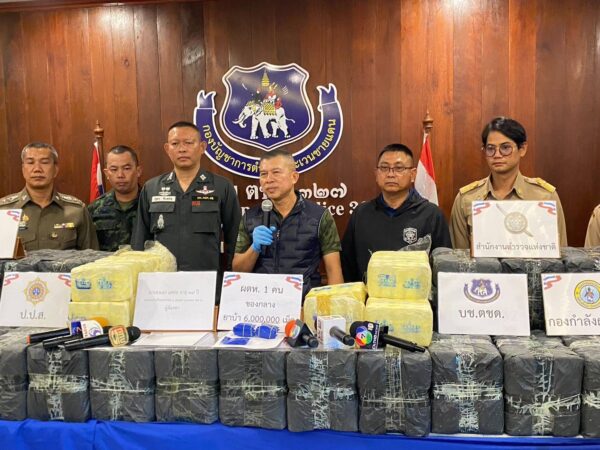 ผบช.ตชด. แถลง ตชด.ไล่ล่าระทึกสกัดจับขบวนการลำเลียงยาเสพติดในพื้นที่ จ.เชียงราย จับกุมผู้ต้องหา 1 คน พร้อมยาบ้า 6,000,000 เม็ด