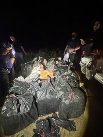 จึงได้ลงรถฉายไฟเพื่อตรวจสอบ พบนายธงเอก (ขอสงวนนามสกุล) เปิดประตูรถฝั่งผู้โดยสารข้างคนขับว่ายน้ำหนีไปฝั่งตรงข้ามและพยายามวิ่งหลบหนีเจ้าหน้าที่ เจ้าหน้าที่ชุดจับกุมจึงได้กระโดดลงน้ำติดตามไปอย่างกระชั้นชิดและขึ้นฝั่งวิ่งติดตาม ไปจนกระทั่งบริเวณบนเนินเขาห่างจากจุดที่รถต้องสงสัยเสียหลักฯ ประมาณ 400 เมตร เจ้าหน้าที่ชุดจับกุมได้วิ่งติดตามและเข้าควบคุมตัวนายธงเอก และนำตัวมายังจุดเกิดเหตุเพื่อทำการตรวจค้น