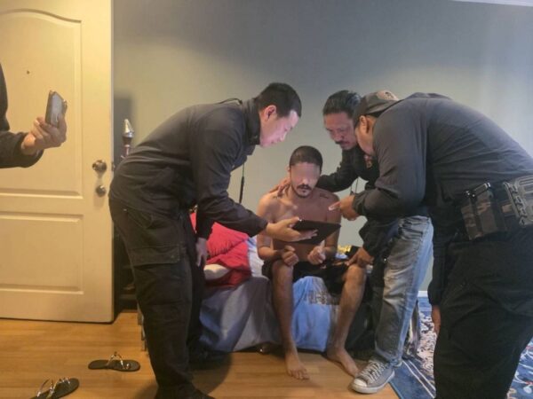 ภายใต้การอำนวยการของ พล.ต.ท.ภาณุมาศ บุญญลักษม์ ผบช.สตม., พล.ต.ต.ปรัชญา ประสานสุข รอง ผบช.สตม., พล.ต.ต.พันธนะ นุชนารถ รอง ผบช.สตม., พล.ต.ต.ประสาธน์ เขมะประสิทธิ์ ผบก.ตม.1, พ.ต.อ.กีรติศักดิ์ ก้องเกียรติศิริ รอง ผบก.ตม.1, ว่าที่ พ.ต.อ.พลสิทธิ์ สุทธิอาจ ผกก.สืบสวน บก.ตม.1 สั่งการให้ กก.สืบสวน บก.ตม.1 นำโดย พ.ต.ท.สุธีรฐ์ ธีระสวัสดิ์ รอง ผกก.สืบสวน บก.ตม.1, พ.ต.ท.ทวีทรัพย์ ชัยภูมิ, พ.ต.ท.สุริโย ไชยยอด สว.กก.สืบสวน บก.ตม.1 พร้อมกำลังหน้าที่ชุดสืบสวน บก.ตม.1 นำหมายจับศาลอาญาเข้าจับกุม นายกัสซัน (นามสมมุติ) สัญชาติอิหร่าน ในฐานความผิด “ร่วมกันลักทรัพย์ในเวลากลางคืน ตั้งแต่สองคนขึ้นไปในที่สาธารณะสถานีรถไฟ”