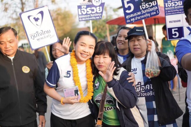 สุขสมรวย วันทนียกุล “เจ๊รวย”ผู้สมัคร สส.หมายเลข 5 เขต1พรรคภูมิใจไทย จ.อำนาจเจริญ ขยันลงพื้นที่ ในทุกหมู่บ้านทุกตำบล อย่างขยันขันแข็ง กราบไหว้ขอคะแนนจาก ประชาชน โดยไม่รู้สึกเหน็ดเหนื่อย ซึ่งก็ได้รับ การตอบรับจากประชาชน เป็นอย่างดี ซึ่งคาดการณ์ว่า จะมีคะแนนมาเป็นลำดับ 1 ของจังหวัด อำนาจเจริเจริญ โดยเฉพาะโค้งสุดท้ายเหลืออีกวันเดียว ก็จะมีการหย่อนบัตรเลือกตั้งเข้าคูหาเลือกตั้งกันแล้ว