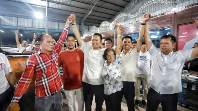 เมื่อเวลา 22.00 น. วันที่ 8 ก.พ.2569 บรรยากาศการสรุปผลคะแนนเลือกตั้งสมาชิกสภาผู้แทนราษฎร (สส.) เขตเลือกตั้งที่ 2 จังหวัดปทุมธานี อย่างไม่เป็นทางการสิ้นสุดลง ผลปรากฏว่าลูกเต๋า ศุภชัย นพขำ ชนะทั้งพรรคประชาชนและพรรคภูมิใจไทยบ้านใหญ่สามโคก ท่ามกลางเสียงไชโยโห่ร้องของผู้สนับสนุนที่เดินทางมาแสดงความยินดี