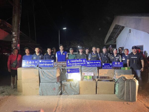 กองทัพเรือผนึกกำลังฝ่ายความมั่นคง สกัดขบวนการลักลอบขนสินค้าผิดกฎหมายตามลำน้ำโขงยึดของกลางเป็นบุหรี่ต่างประเทศ 23 ลัง