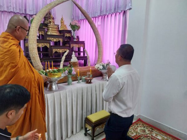 เมื่อวันที่ 26 กุมภาพันธ์ 2569.ผู้สื่อข่าวรายงานจากพื้นที่ชายแดนไทย=เมียนมา อ.อุ้มผาง จ.ตาก นายมาโนช โพธิ์เนียม นายอำเภออุ้มผาง จังหวัดตาก เป็นประธานอัญเชิญงาช้างกับบ้านเลตองคุ โดยมีผู้ใหญ่บ้านและชาวบ้าน แต่งกายชนเผ่าปากะญอ มารับงาช้าง โดยมีเจ้าหน้าที่ตำรวจสถานีตำรวจภูธรอุ้มผาง มาอำนวยคว่มสะดสก ด้านการจราจรนำขบวนในการรำส่งคืน ณ.ที่ว่าการอำเภออุ้มผาง จ.ตาก