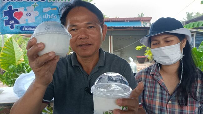 ปราจีนบุรี ––มะพร้อมน้ำหอมตกต่ำเหลือลูกละ 2 บาท เจ้าของสวนพลิกวิกฤตขนมะพร้วมน้ำหอมจากสวนแปรรูปแช่เย็นขายริมถนนสร้างรายได้พุ่ง
