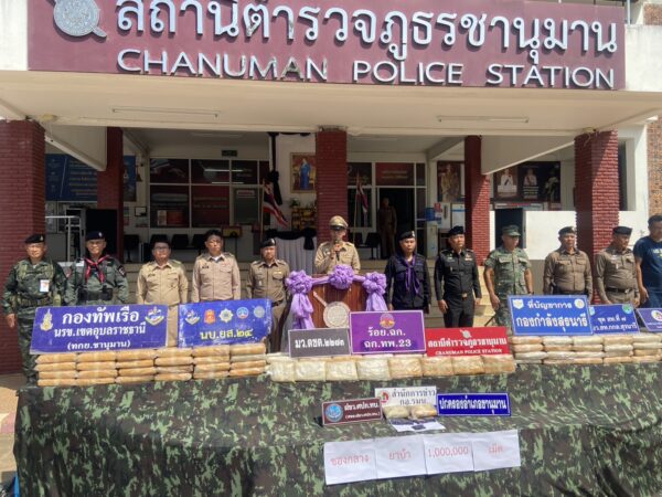 จากการตรวจสอบภายในกระสอบสีดำ จำนวน 6 กระสอบ พบเป็นยาบ้าทั้งหมด นับโดยละเอียด ได้จำนวน 1 ล้านเม็ด โดยมี นายเสนีย์ ส้มเขียวหวาน ผู้ว่าราชการจังหวัดอำนาจเจริญ เป็นผู้นำการแถลงข่าวกับสื่อมวลชน ณ สถานีตำรวจภูธรชานุมาน อำเภอชานุมาน จังหวัดอำนาจเจริญ
