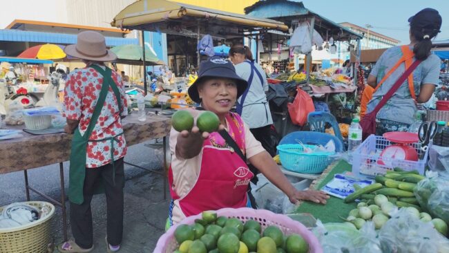 นางแป้น แฟนพิมาย อายุ 60 ปี แม่ค้าขายผักในตลาดจอแจ เปิดเผยว่า ขณะนี้ผักส่วนใหญ่ยังขายในราคาปกติ แต่ที่เห็นชัดคือ “มะนาว” ที่ปรับราคาสูงขึ้น โดยตนรับมาจากแหล่งขายส่งในราคาลูกละประมาณ 4–5 บาท และต้องนำมาขายลูกละ 5–7 บาท เพื่อให้พอมีกำไรเล็กน้อย