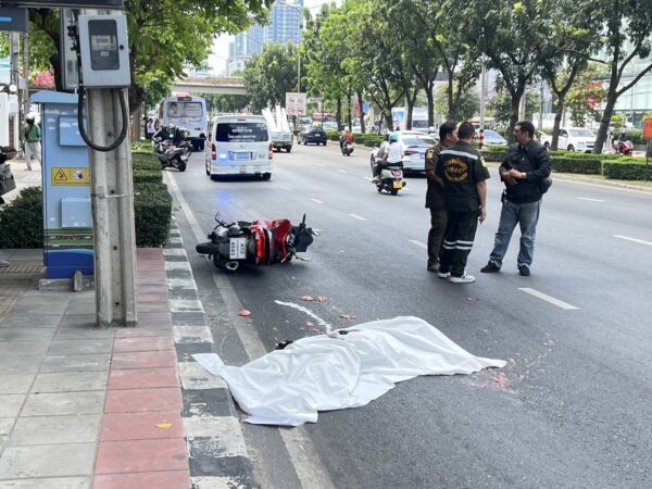 เมื่อเวลา 11.10 น.วันที่ 11 มีนาคม ร.ต.ท.ณรงค์ศักดิ์ พิบูล รอง สว.สอบสวน สน.สุทธิสาร รับแจ้ง อุบัติเหตุรถประจำทางเฉี่ยวชนรถจักรยานยนต์มีผู้เสียชีวิตหนึ่งรายที่บริเวณถนนรัชดา แขวงเขตดินแดง รุด ตรวจที่เกิดเหตุพร้อมแพทย์รพ.รามาธิบดี และ เจ้าหน้าที่อาสามูลนิธิร่วมกตัญญู