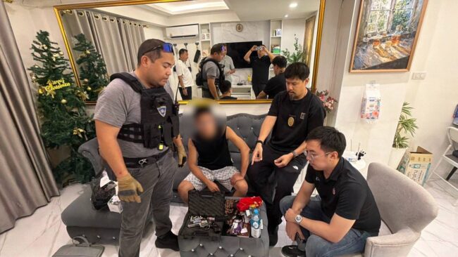 กองกำกับการสืบสวนสอบสวน บก.ตม.3 เปิดปฏิบัติการสายฟ้าแลบ “เด็ดปีกซูเปอร์บอลลูน” บุกทลายรังลับเอเย่นต์ชาวจีน กลางเมืองพัทยา หลังลักลอบใช้แพลตฟอร์มออนไลน์เป็นฉากบังหน้า จำหน่าย “แก๊สหัวเราะ” และสารเสพติดให้วัยรุ่น พบของกลางเพียบ ทั้งอาวุธปืนเถื่อน เครื่องกระสุน และยาเสพติดประเภท 2 ซุกซ่อนภายในบ้านพัก