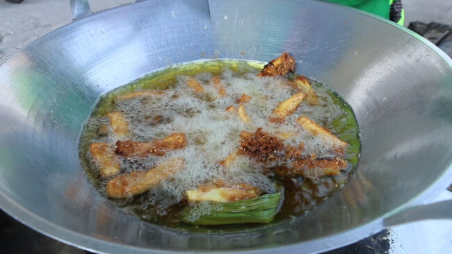 “บางสัปดาห์ราคาน้ำมันปาล์มมีการปรับขึ้นราคาถึง 2 ครั้ง ซึ่งร้านยังคงจำหน่ายราคาเดิม แต่ลดปริมาณลง คือ เดิมขาย 12 ชิ้นในราคา 20 บาท แต่ตอนนี้ลดลงเหลือ 8 ชิ้น 20 บาท ซึ่งลูกค้าส่วนใหญ่เข้าใจในการปรับการจำหน่ายของทางร้าน อีกทั้งขณะนี้ร้านก็ขายของได้ยากขึ้น เดิมเมื่อก่อนบ่าย 3 โมง เก็บของกลับบ้านเพราะของหมด แต่ทุกวันนี้ต้องขายถึง 5 โมงเย็นของถึงจะหมด ซึ่งหากน้ำมันปาล์มปรับขึ้นราคาจนถึงขวดละ 60 บาท ร้านอาจจะตัดสินใจหยุดพักการจำหน่ายชั่วคราว เพื่อทำใจ”