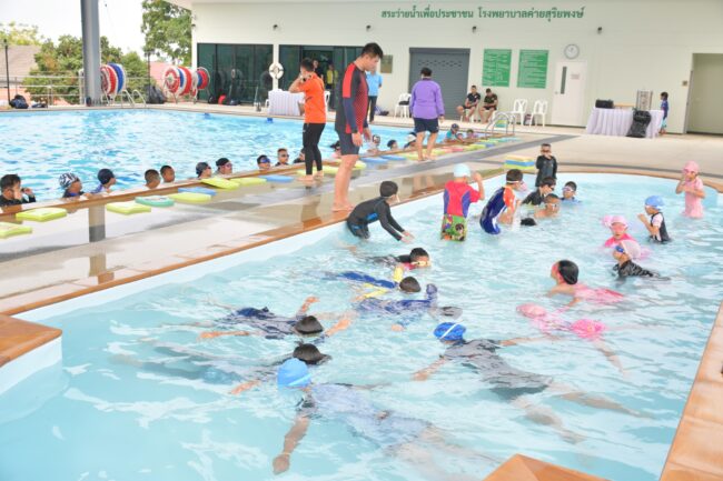 โดยมีเด็กและเยาวชนจำนวนมาก เข้าร่วมโครงการฝึกทักษะการว่ายน้ำ ซึ่งมีครูสอนว่ายน้ำที่ผ่านการฝึกอบรมมาสอนน้องๆ รวมถึงความปลอดภัยทางน้ำ การเอาชีวิตรอดในสถานการณ์ฉุกเฉิน ทั้งนี้เพื่อให้เด็กๆมีความรู้และทักษะติดตัว รวมทั้งจะยังส่งเสริมแรงบันดาลใจด้านกีฬาด้วย