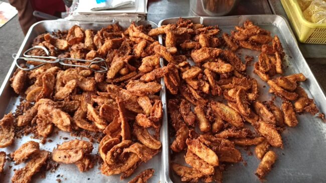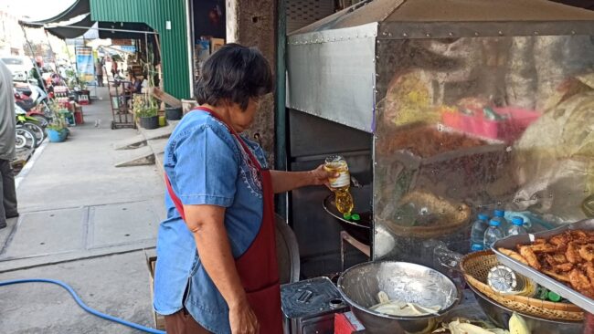 เช่น กล้วยทอด เผือกทอด มันทอด กรอยทอด ตอนนี้ตนเองต้องมาลดของลง เหลือเพียงกล้วยทอดอย่างเดียว เนื่องจากมาเจอปัญหาน้ำมันทอดแพงขึ้น จากเคยซื้อลังละ สามร้อยกว่าบาท ตอนนี้ราคาลังละเกือบเจ็ดร้อยบาท ต้องเปลี่ยนมาซื้อเป็นขวดจากเคยซื้อขวดราคาเกือบสี่สิบกว่าบาท ตอนนี้ก็ขึ้นหลายสิบบาทแล้ว ที่แย่กว่านี้คือของที่เคยขายอยู่