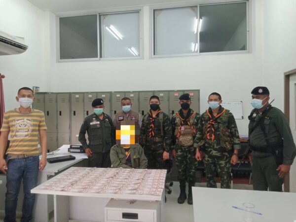 พร้อมด้วยของกลางเงิน ที่เป็นธนบัตรปลอมฉบับละ 1,000 บาท จำนวน 70 ฉบับ,รถยนต์กระบะ ยี่ห้อ โตโยต้า รุ่น ไมตี้เอ๊ก สี บรอนซ์ หมายเลขทะเบียน ตาก ,และ วัวเพศผู้ สีดำ จำนวน 1 ตัว,วัวเพศผู้ สีขาว จำนวน 1 ตัว และเอกสารประกอบบันทึกการจับกุม ใบรายงานผลการตรวจปัสสาวะจากกลุ่มงานเทคนิคการแพทย์ โรงพยาบาลอุ้มผาง จำนวน 1 ฉบับ ( ภายหลังได้มีการ ส่งผู้ต้องหาตรวจหาสารเสพติดในร่างกายและพบภาพมีสารเสพติดในร่างกายผู้ต้องหา) โดยเจ้าหน้าที่ได้ทำการจับกุมตัวได้ที่หน้าจุดตรวจสายตรวจตำบลโมโกร บ้านปรอผาโด้ หมู่ที่ 1 ต.โมโกร อ.อุ้มผาง จ.ตาก