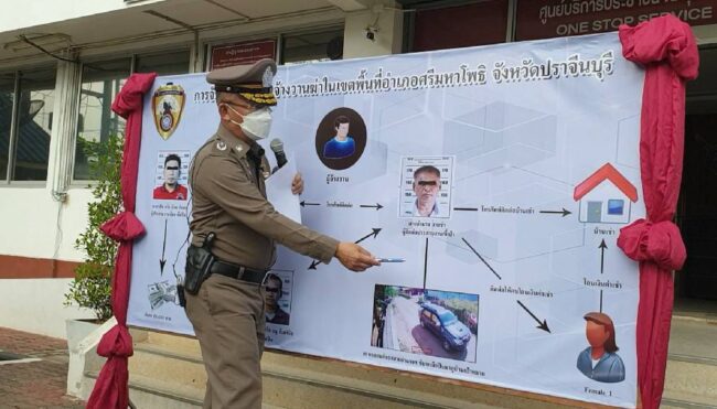 ปราจีนบุรี – ผู้การฯปราจีนบุรี แถลงจับ 2 ผู้ต้องหา จ้างวาน-ชี้เป้า มือปืนสังหารเสี่ยโต ยังปากแข็งปฎิเสธ ล่านาย A คนกลางอยู่ในเขต จ.ปราจีนบุรี ผู้รับงานจ้างวานฆ่ามาจากเสี่ย ป.