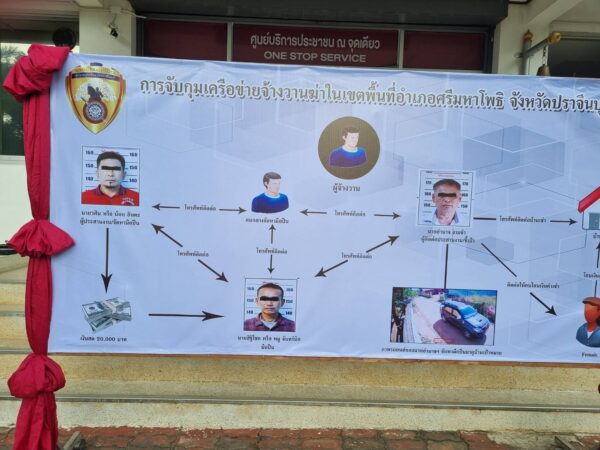 พล.ต.ต.วินัย นุชชา ผบก.ภ.จว.ปราจีนบุรี,พ.ต.อ.เกรียงไกร บุญซ้อน รอง ผบก.ภ.จว.ปราจีนบุรี, พ.ต.อ.วิวัฒน์ พิสิษฐ์ศักดิ์ ผกก.สภ.ศรีมหาโพธิ พร้อมชุดสืบสวน สภ.ศรีมหาโพธิ ได้ร่วมแถลงผลการจับกุมตัว 2 ผู้ต้องหาคือ ผู้จ้างวานมือปืน(นายอำนาจ งามขำ) – ผู้ชี้เป้าหมายให้สังหาร (นายวศิน หรือน้อย อินตะ ) ในคดีร่วมกันจ้างวานสังหารนาย รณภศ หรือ เสี่ยโต วิสุทธิเหม หลังทำการจับกุมมือปืนคือนายสิฐิโชค หรือ หมู จันทร์นิล อายุ 44 ปี ต.ท่าเสา อ. โพทะเล จ.พิจิตร ก่อนกำลังจะก่อเหตุนั้น