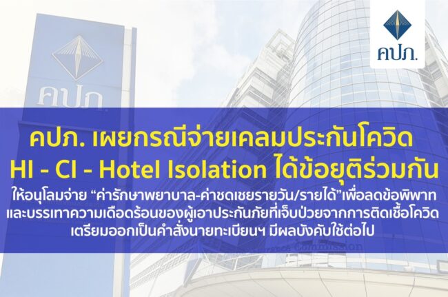 คปภ. เผยกรณีจ่ายเคลมประกันโควิด HI – CI – Hotel Isolation