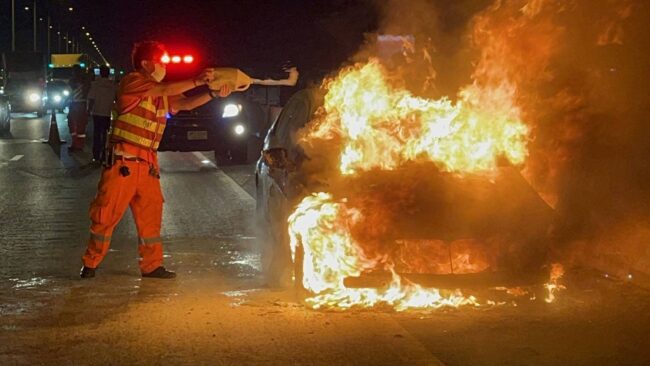 สมุทรปราการ-ระทึก!ไฟไหม้รถบีเอ็มดับเบิลยู 320 ไอบนทางด่วนบูรพาวิถี ขาเข้า หลักกิโลเมตรที่ 21 ตำบลศีรษะจรเข้ใหญ่ อำเภอบางเสาธง เจ้าของรถยนต์เผยขับรถมาถึงที่เกิดเหตุความร้อนขึ้นสูงจากนั้นไม่นานก็พบกลุ่มควันลอยออกมาจากห้องเครื่อง จึงรีบนำรถจอดชิดขอบทางด้านซ้าย ก่อนที่เพลิงลุกไหม้อย่างรวดเร็ว