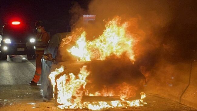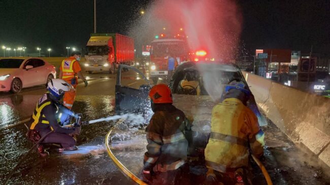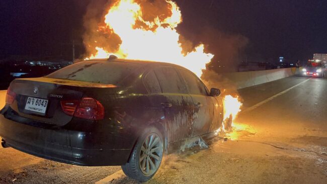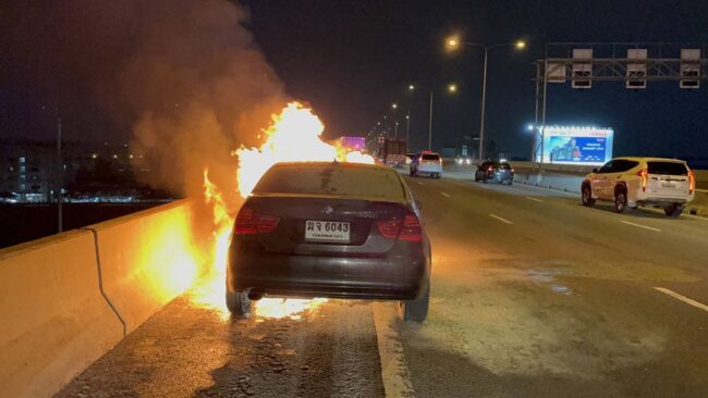 ระทึก!ไฟไหม้รถบีเอ็มดับเบิลยูบนทางด่วนบูรพาวิถี