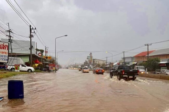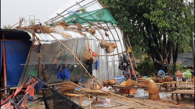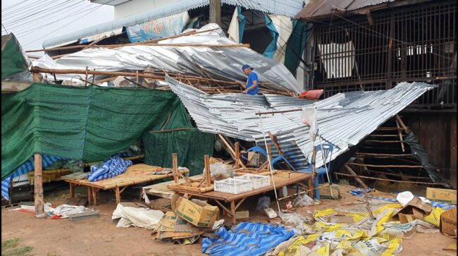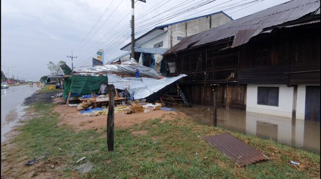 นครราชสีมา- พายุฤดูร้อนถล่มประทาย หอบหลังคาร้านค้างริมถนนปลิวหาย เสาไฟล้มระเนระนาด น้ำท่วมผิวการจราจร ทำรถติดยาวหลายกิโลเมตร