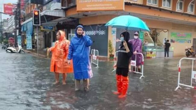 ยโสธร-พายุฤดูร้อนพัดถล่ม ลมกรรโชกแรก แถมฝนตกหนักน้ำท่วมฉับพลันเทศบาลเมืองยโสธร นายกนายกเทศมนตรีเมืองยโสธรนำกองช่างฝ่าสายฝนแก้ปัญหาน้ำท่วม