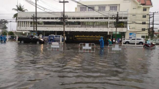 ขณะที่ นายณัฐพล นาคสุข นายกเทศมนตรีเมืองยโสธร พร้อมสมาชิกสภาเทศบาลเมืองยโสธร ฝ่ายป้องกันและบรรเทาสาธารณภัย เทศกิจ กองช่าง กองช่างสุขาภิบาล และกองสาธารณสุขและสิ่งแวดล้อมลงพื้นที่แก้ปัญหาน้ำท่วมขังถนนสายต่างๆเนื่องจากระบายไม่ทันส่วนสาเหตุที่น้ำระบายไม่ทันในครั้งนี้อาจเกิดจากการก่อสร้างขุดวางบ่อพักและท่อลอด ในโครงการสายไฟลงใต้ดินบนถนนแจ้งสนิท ที่อาจทำให้มีเศษวัสดุอุดตันในท่อระบายน้ำ ทำให้การไหลของน้ำระบายไม่ทันจึงเกิดน้ำท่วมถนนในครั้งนี้