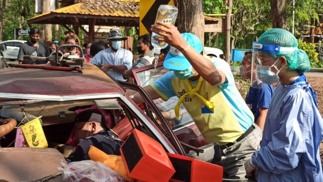 เมื่อเวลา 15.00.น.ของวันที่ 22 มีนาคม 65 สถานีตำรวจภูธรลานสักได้รับแจ้งว่ามีพระขับรถยนต์กระบะ ประสานงา ชนกับรถยนต์กระบะมีพระติดอยู่ภายในรถ อาการบาดเจ็บสาหัส หลังได้รับแจ้ง ร.ต.อ.เอกชลิต หนุนพงษ์ ร้อยเวสภ.ลานสัก พร้อมกู้ภัยอุทัยธานีจุดลานสักประสานงานนำเครื่องมือตัดถ่างมายังที่เกิดเหตุ ใกล้กับทางแยกช่วงทางโค้ง ถนนลานสัก-หนองฉาง หมู่ 2 ต.ทุ่งนางาม อ.ลานสัก จ.อุทัยธานี ก่อนใช้เครื่องตัดถ่างเร่ง นำพระออกมาจากตัวรถ ก่อนนำส่งโรงพยาบาลอย่างเร่งด่วน ระหว่างนั้นได้มีรถรองผู้ว่าจังหวัดอุทัยธานี ผ่านมาพอดี รุดลงมาช่วยปฐมพยาบาล
