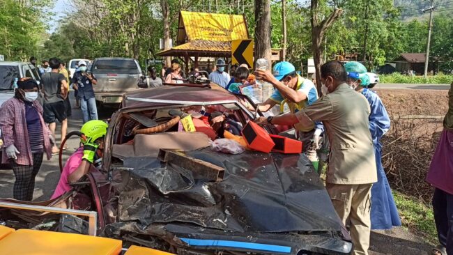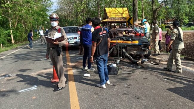 สลด!พระซิ่งกระบะหลุดโค้งพุ่งข้ามเลนประสานงาปิกอัพมรณะภาพที่โรงพยาบาล