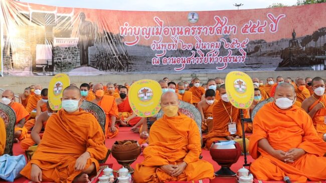 วันนี้ (23 มีนาคม 2565) พระเทพสีมาภรณ์ เจ้าคณะจังหวัดนครราชสีมา และเจ้าอาวาสวัดบึง ประธานฝ่ายสงฆ์ พร้อมด้วยนายวิเชียร จันทรโณทัย ผู้ว่าราชการจังหวัดนครราชสีมา ประธานฝ่ายฆราวาส และหัวหน้าส่วนราชการ ศาล ทหาร ตำรวจ ประชาชนชาวจังหวัดนครราชสีมา ร่วมประกอบพิธีทำบุญเมืองนครราชสีมา ครบรอบ 554 ปี ที่บริเวณลานอนุสาวรีย์ท้าวสุรนารี อำเภอเมืองนครราชสีมา จังหวัดนครราชสีมา