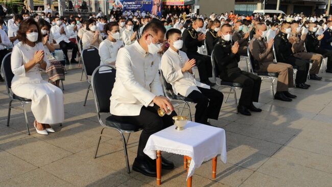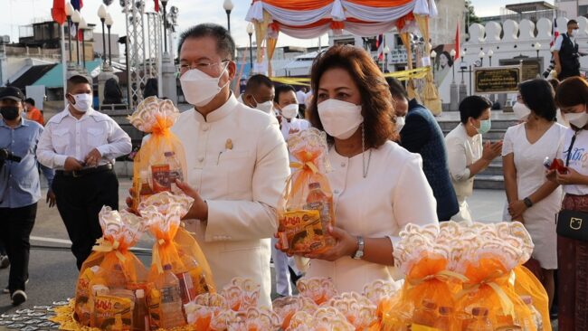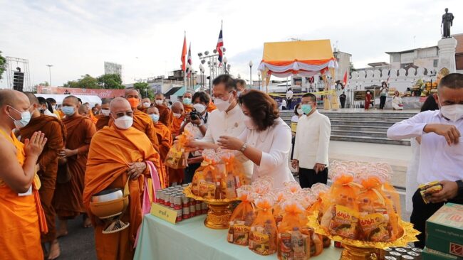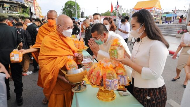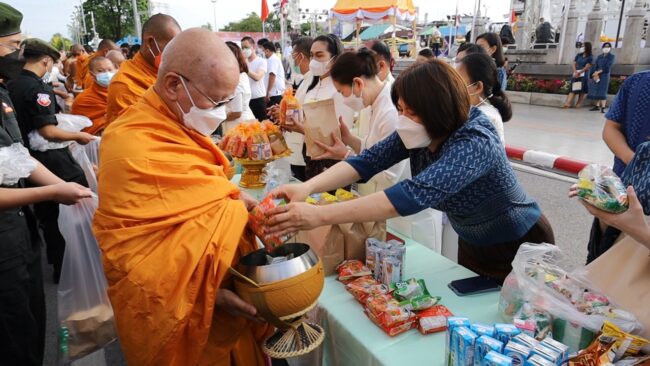 โดยคณะสงฆ์ได้ร่วมกันสวดมาติกาบังสุกุล และเจริญพระพุทธมนต์สมโภชเมือง ก่อนจะทำบุญตักบาตรพระสงฆ์ จำนวน 554 รูป ถวายเป็นพุทธบูชา เพื่อน้อมถวายเป็นพระราชกุศลแด่สมเด็จพระนารายณ์มหาราช ผู้สถาปนาเมืองนครราชสีมา และเพื่ออุทิศส่วนกุศลให้วีรชนผู้กล้า บรรพบุรุษ ผู้เสียสละชีวิตปกป้องเมืองนครราชสีมา เนื่องในวันแห่งชัยชนะท้าวสุรนารีประจำปี 2565