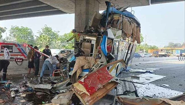 สระบุรี-สังเวยชีวิตอีก 1 ศพ เหยื่อรถทัวร์ 2 ชั้น ชนตอม่อบริเวณหน้าห้างดังสระบุรี หลังเจ็บอาการโคม่า เลือดคลั่งในสมอง-ปอด รวมผู้โดยสารเสียชีวิต 9 ราย บาดเจ็บ 22 คน