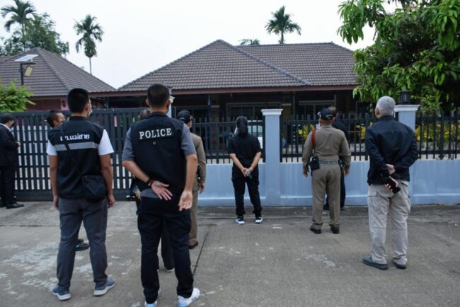 นายไตรยฤทธิ์ เตมหิวงศ์ อธิบดีกรมสอบสวนคดีพิเศษ (ดีเอสไอ) มอบหมายให้ นายธานินทร์ เปรมปรีดิ์ ผู้อำนวยการกองคดีคุ้มครองผู้บริโภค และศูนย์ปฏิบัติการคดีพิเศษ เขตพื้นที่ 5 (เชียงใหม่) เร่งดำเนินการสืบสวนและรวบรวมพยานหลักฐาน เพื่อยื่นคำร้องขอหมายค้นจากศาลจังหวัดเชียงราย เพื่อเข้าปฏิบัติการตรวจค้นบ้านพักของกลุ่มเครือข่ายยาเสพติด โดยให้สนธิกำลังกับเจ้าหน้าที่ตำรวจสถานีตำรวจภูธรแม่สาย และสถานีตำรวจภูธรเชียงแสน จ.เชียงราย เข้าตรวจค้นบ้านพักของกลุ่มเครือข่ายยาเสพติด (คดีพิเศษที่ 32/2564) จำนวน 3 จุด พร้อมกัน ได้แก่ ต.เวียงพางคำ อ.แม่สาย 2 จุด และต.ป่าสัก อ.เชียงแสน 1 จุด
