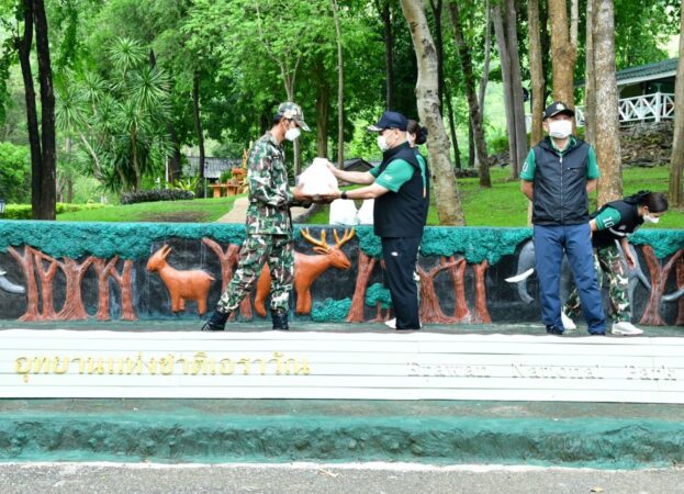 นายวราวุธ ศิลปอาชา รัฐมนตรีว่าการกระทรวงทรัพยากรธรรมชาติและสิ่งแวดล้อม (รมว.ทส.) พร้อมด้วย นายจตุพร บุรุษพัฒน์ ปลัดกระทรวงฯ (ปกท.ทส.) ลงพื้นที่ตรวจเยี่ยมอุทยานแห่งชาติเอราวัณ และมอบเสบียงอาหาร เพื่อเป็นขวัญกำลังใจแก่เจ้าหน้าที่ในการปฏิบัติงาน ณ ที่ทำการอุทยานแห่งชาติเอราวัณ อำเภอศรีสวัสดิ์ จังหวัดกาญจนบุรี