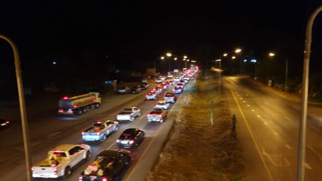 เมื่อเวลา18.30 น.วันนี้ 10 เม.ย.65 ผู้สื่อข่าว จ.ปราจีนบุรีรายงานบรรยากาศการเดินทางกลับูมิลำเนาสู่ภาคตะวันออกเฉียเหนือ ของประชาชน จากย่านนิคมอุตสาหกรรมในภาคตะวันออก-ภาคกลาง บนถนนผ่านบนภูเขาระหว่างอุทยานแห่งชาติเขาใญ่กับอุทยานแห่งชาติทับลาน มรดกโลก สายสุวินทวงศ์ (กบินทร์บุรี – นครราชสีมา) หรือ สาย 304 ต.บุพราหมณ์ อ.นาดี จ.ปราจีนบุรี ถนนสายเสี่ยงภัยที่มักเกิดอุบัติเหตุรุนแรงทุก ๆ ปี เนื่องจากความลาดชันสูงมีหลายทางโค้งยาวไกลกว่า 12 กม.เศษ