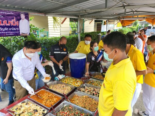 ส.ส.หนึ่ง นำอาหารเจ เลี้ยงเป็นกำลังใจให้กับเจ้าหน้าที่ร่วมในพิธีล้างป่าช้าของพุทธสมาคม