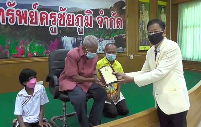 (20เม.ย.65) ผู้สื่อข่าวรายงานบรรยากาศสีสันสุดประทับใจกับลีลาเตะปีบเสียงดังปั่งสนั่นของคุณตาเบ้า เพิ่มชีลอง อดีตข้าราชการครูบำนาญ อายุ 100 ปี สมาชิกสหกรณ์ออมทรัพย์ครูชัยภูมิรุ่นแรก บ้านเลขที่ 16 หมู่ 14บ้านหนองไผ่ ต.หนองไผ่ อ.เมือง จ.ชัยภูมิ ในโอกาสที่นายถนอม ลุนภา ประธานสมาคมผู้สูงอายุแห่งประเทศไทย จ.ชัยภูมิในพระราชูปถัมภ์สมเด็จพระศรีนครินครินทราบรมราชชนนี ร่วมกับนายมนัส เจียมภูเขียว ประธานกรรมการสหกรณ์ออมทรัพย์ครูชัยภูมิ มอบโล่และเข็มเชิดชูเกียรติผู้สูงอายุเกิน 100 ปี วันผู้สูงอายุ ปี 2565 จัดขึ้นที่ชั้น 3 ห้องประชุมสหกรณ์ออมทรัพย์ครูชัยภูมิ จำกัด โดยคุณตาเบ้า เพิ่มชีลอง อดีตข้าราชการครูบำนาญ อายุ 100 ปี เกิดปี พ.ศ.2465 หลังได้ขึ้นเวทีรับมอบโล่และเข็มเชิดชูเกียรติผู้สูงอายุเกิน 100 ปีแล้ว ได้ลงเวทีแสดงความแข็งแรง ไปไหนมาไหนได้สะดวก ไม่พึ่งลูกหลาน โดยแสดงลีลาเตะปีบเสียงดังปั่งสนั่นพุ่งไปไกลกว่า 2 เมตร ของคุณตาเบ้า เพิ่มชีลอง ถึง 2 ครั้ง สร้างความฮือฮาให้ผู้ไปร่วมในงานเป็นอย่างมาก หลายคนถึงกับออกปากทำอย่างไรถึงแข็งแรงได้ขนาดนี้ แม้อายุ 100 ปีแล้ว….